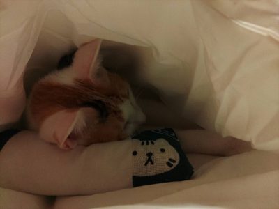 ちゃんと枕に頭を乗せて、お布団の中に入ってますね😍