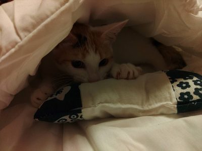 ♪雪やこんこ♪ 歌ではこたつで丸くなる猫ですが、武内家の猫ちゃんたちはお布団で丸くなるそうですよ😊しかもちゃんと自分用のお布団です✨